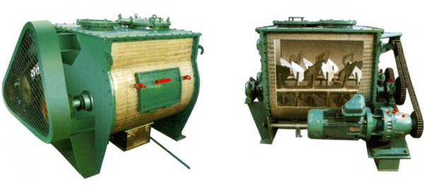 概述 本系列混合機以強烈、高效混合為特點、臥式筒體內兩根攪拌等速反向旋轉,上特殊布置的槳葉確保物料徑向、環向、軸向三向運動,形成復合循環,在極短的時間內達到均勻混合。