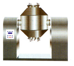 本機(jī)將粉末或粒狀物料通過真空輸送或人工加料到雙錐容器中,隨著容量的不斷旋轉(zhuǎn),物 料在容器中進(jìn)行復(fù) 雜的撞擊運動,達(dá)到均勻的混合。